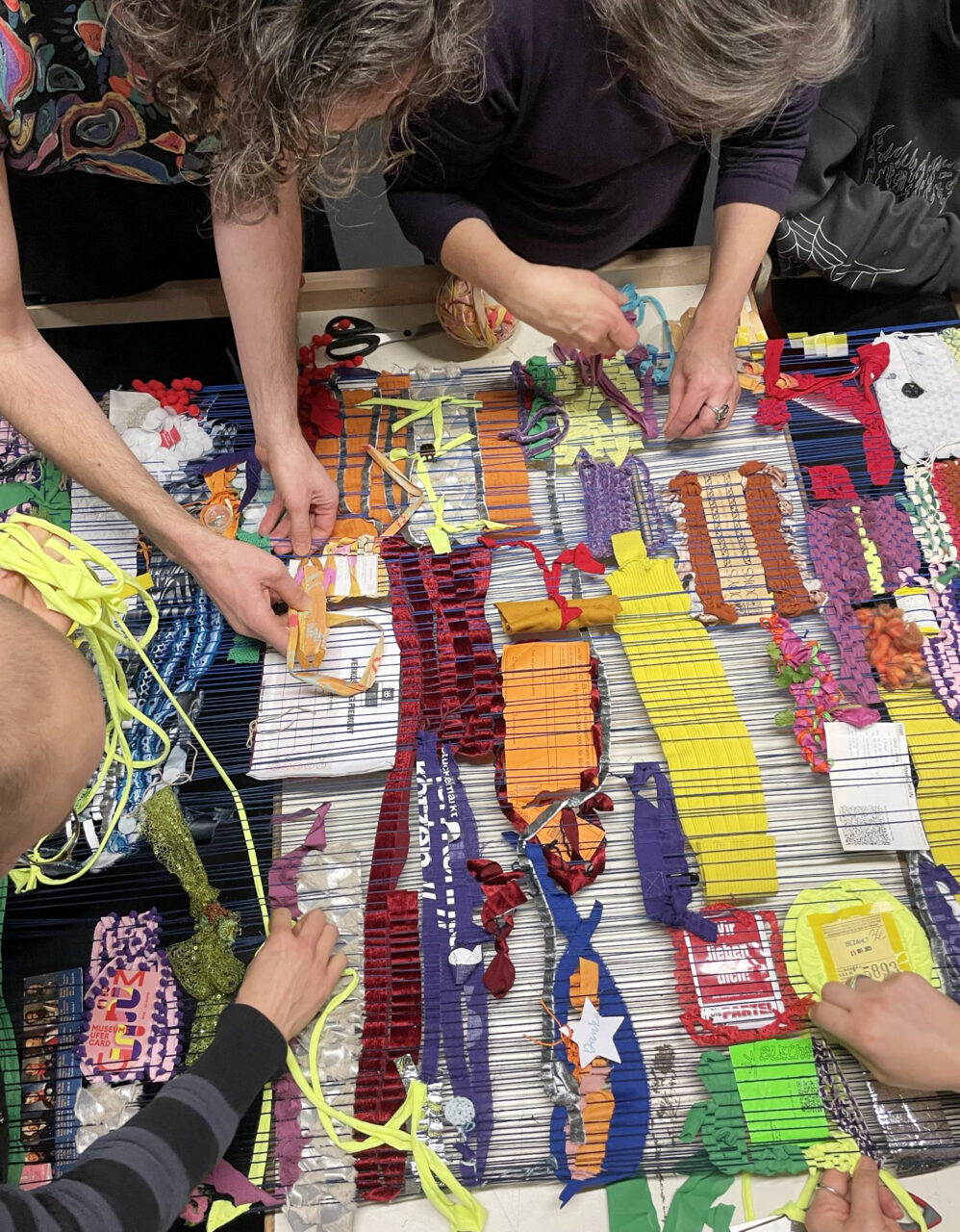 soft archives untersucht Textilien als kollektive Archive und Träger von Erinnerung. In offenen Crafting-Sessions erforschen Teilnehmende mit dem künstlerischen Team, wie sich Sehnsucht, Zugehörigkeit und Erfahrungen in ein Material einschreiben und verweben lassen und was im Zusammenkommen entsteht, während die Hände beschäftigt sind. Das wachsende Geflecht mündet in eine multisensorische Installation mit integrierter Audiodeskription, in der Besucher*innen in ein weiches Archiv eintauchen und dieses weiterspinnen können.